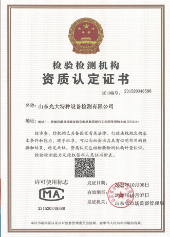 【特種設備檢驗資質和檢驗范圍】 RD2 定期檢驗:第一、二、三類固定式壓力容器(不含超高壓容器,大型高壓者器、球形儲罐) RD3定期檢驗:第一、二類固定式壓力齊器(不含球形儲罐) DD2定期檢驗:公用管道 DD3定用檢:工業管道 QD2 定期檢驗:塔式起重機、流動式起重機,門座式起重機,升降機,纜索式起重機、梔桿式起重機,額定起重量小于 10T(不含10T)的橋式起看機和門式起重機 QD3定期檢驗:流動式起重機,塔式起重機,升降機 ND1定期檢驗:場(廠)內專用機動車輛 ...
